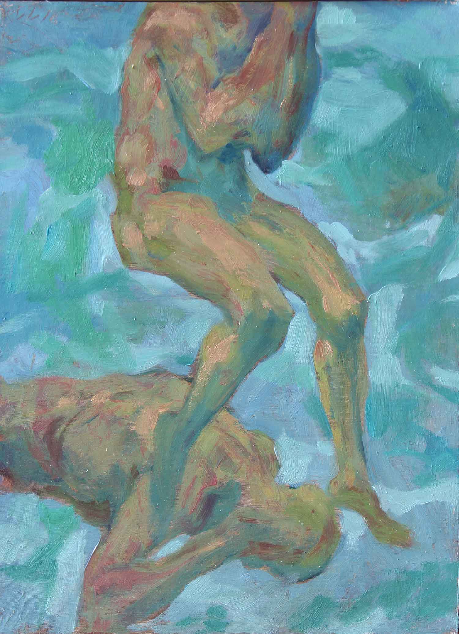 برزخ | مجموعه ی حاضر، بر اساس ایده هایی شروع شد که برای ساخت مجموعه ای مجسمه، طراحی شده بودند؛ اما پرداختن به این ایده ها در نقاشی بصورت جامع تر و آزادنه تری ممکن بود. همچنین ادامه ی کار در نقاشی ها، متاثر یا در واکنش به تلاطم های اجتماعی و سیاسی سال های اخیر است. وقایعی که بازتاب آن ها در روان و فکر، به شکل نگرانی، پرسشگری یا تلاش برای معنابخشی، آثار را تحت تاثیر قرار داده و گاه به صورت مستقیم یا ناخودآگاه، نمایان شده است. در این نقاشی ها، بدن در آسیب پذیرترین حالت خود، از هویت تاریخی، جغرافیایی و فرهنگی عاری شده است تا شمولیت عام تری پیدا کند. استفاده از حالت های غیرروزمره و بیانگرانه، تغییر شکل ها، در هم فرورفتن از هم پاشیدن، مغشوش و مشوش شدن بدن، ابرازهایی برای بیان مفهوم و ایجاد فضای مورد نظر در نقاشی ها بوده است. در برخی آثار، عناصری از طبیعت، جزییات و نشانه هایی تاریخی از معماری، حیوانات و غیره به کار رفته است؛ که کارکردی نشانه ای داشته اند. در بقیه ی آثار این عناصر کاهش یافته و حذف شده اند تا صرفاً عملکرد بدن به عنصر اصلی یا تنها عنصر پیکره ای در اثر تبدیل شود.