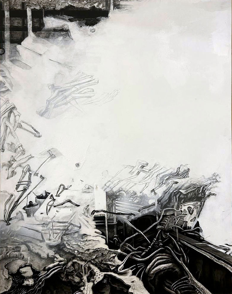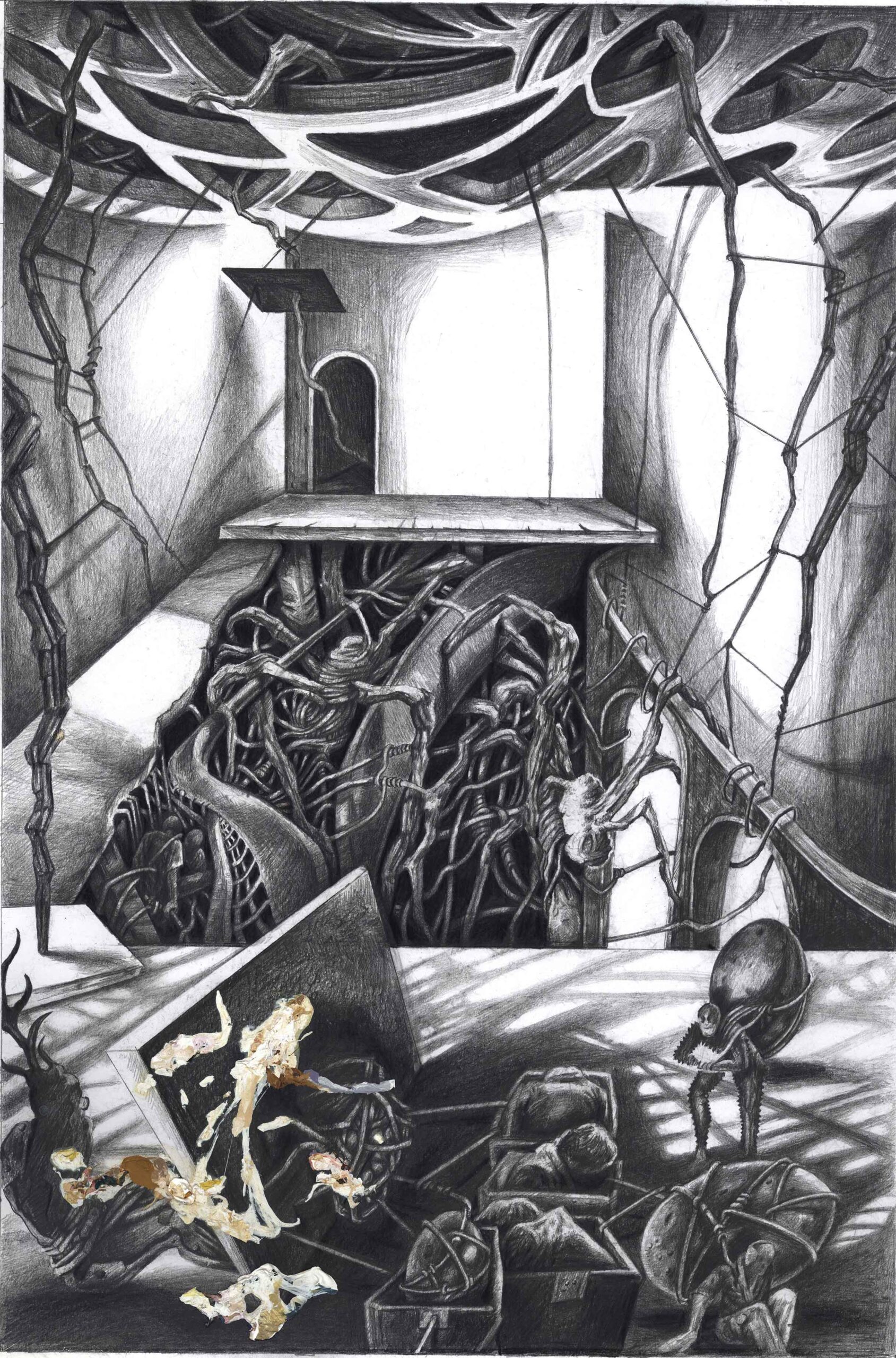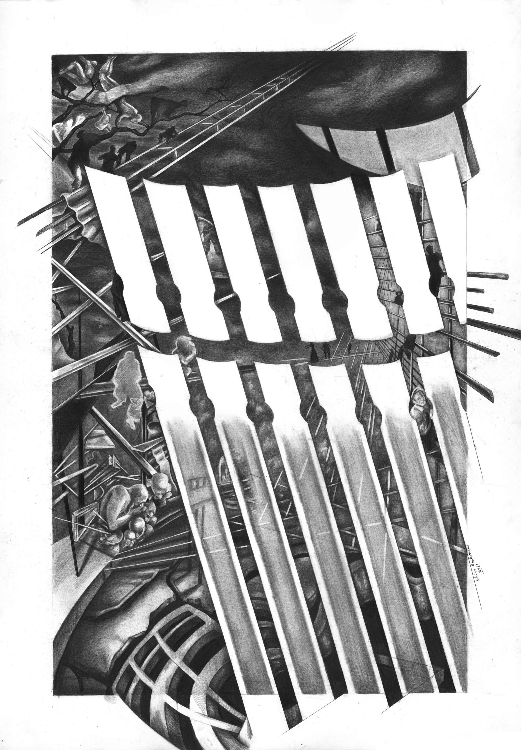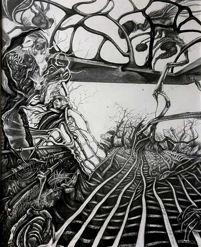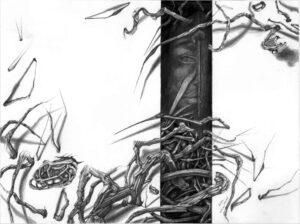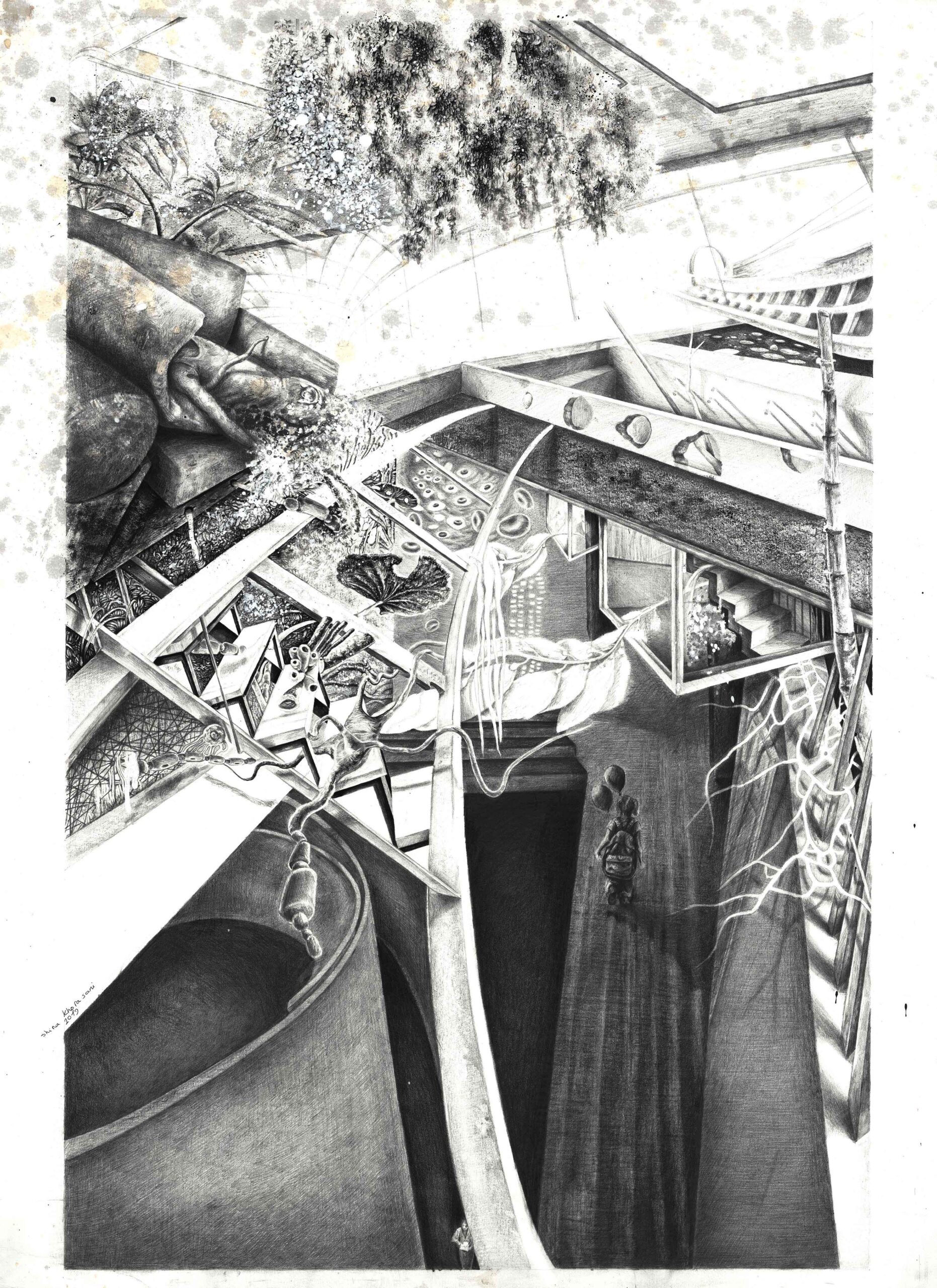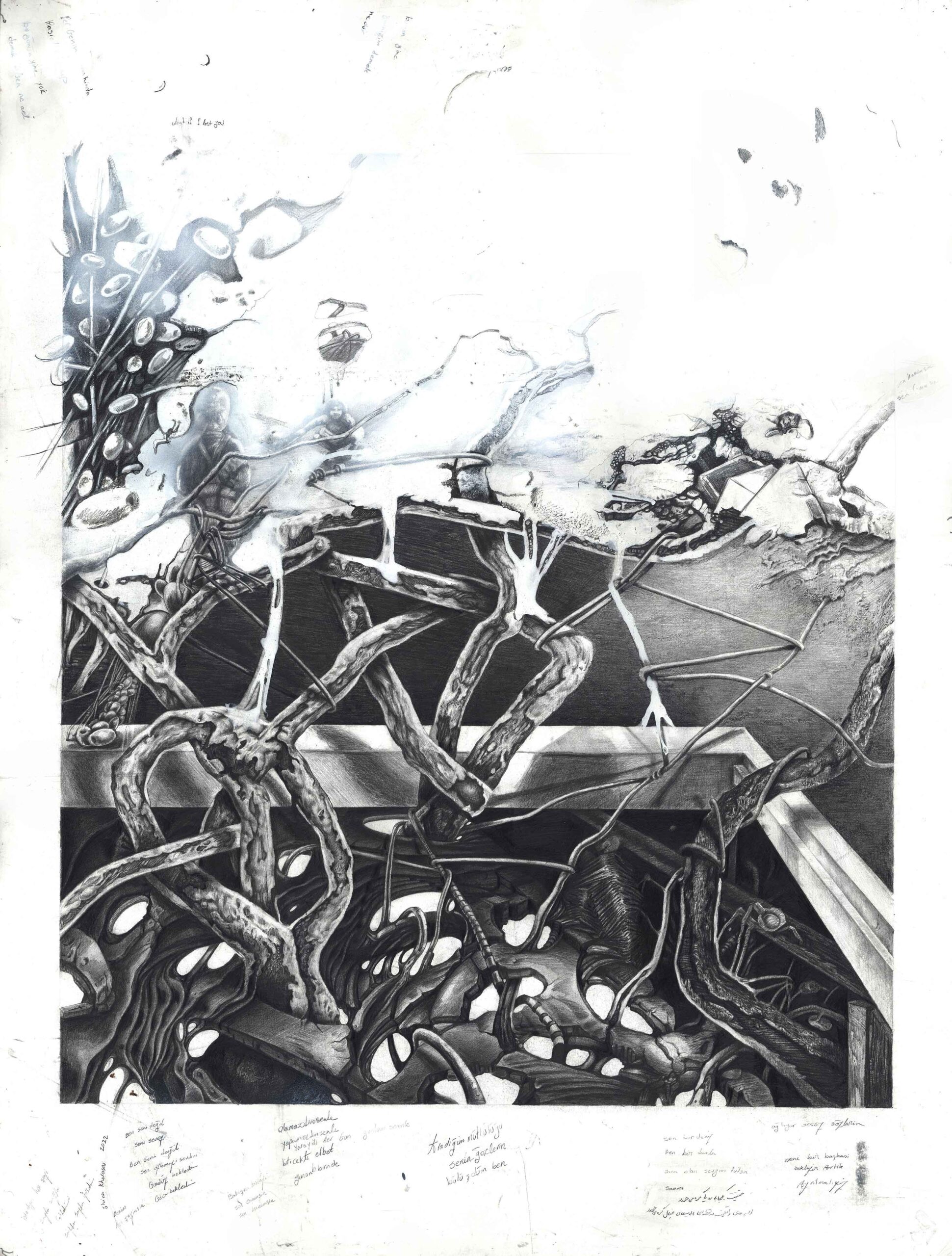 یا عینی یا رویا طراحی. به واسطه بی واسطهگی و فضای مونوتن و بوسیلهی استحاله و انقطاع تنالیتههای خاکستری امکان برقراری ارتباط با تصویر و حس رویاگونه و مستحیل را برای من هموار تر میکند.