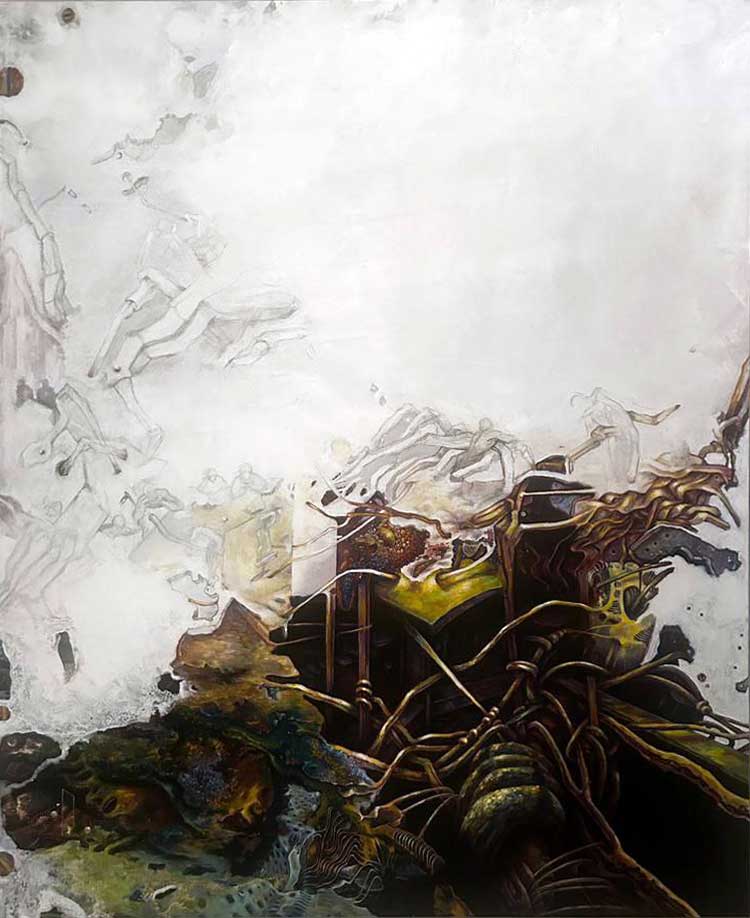 اما در فرایند تلاش برای به تصویر کشیدن رنگی آنها به دلیل عمل ترکیب رنگ، رابطهام با فعل نقاشی کردن قطع و وصل میشود. این سکتههای ارتباطی: بوم، رنگ، دست و مغز را برایم تبدیل به ابزار جدال میکند.