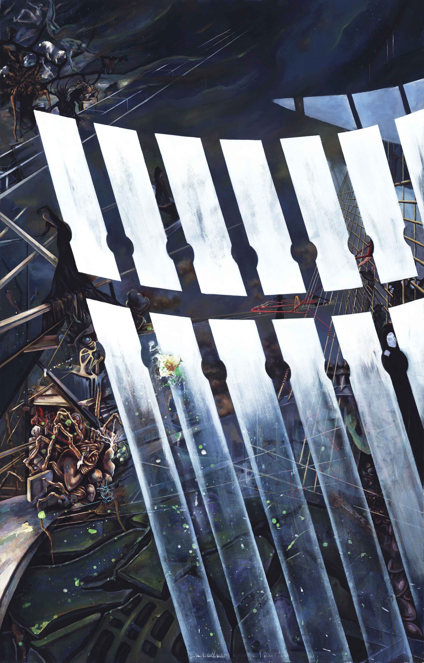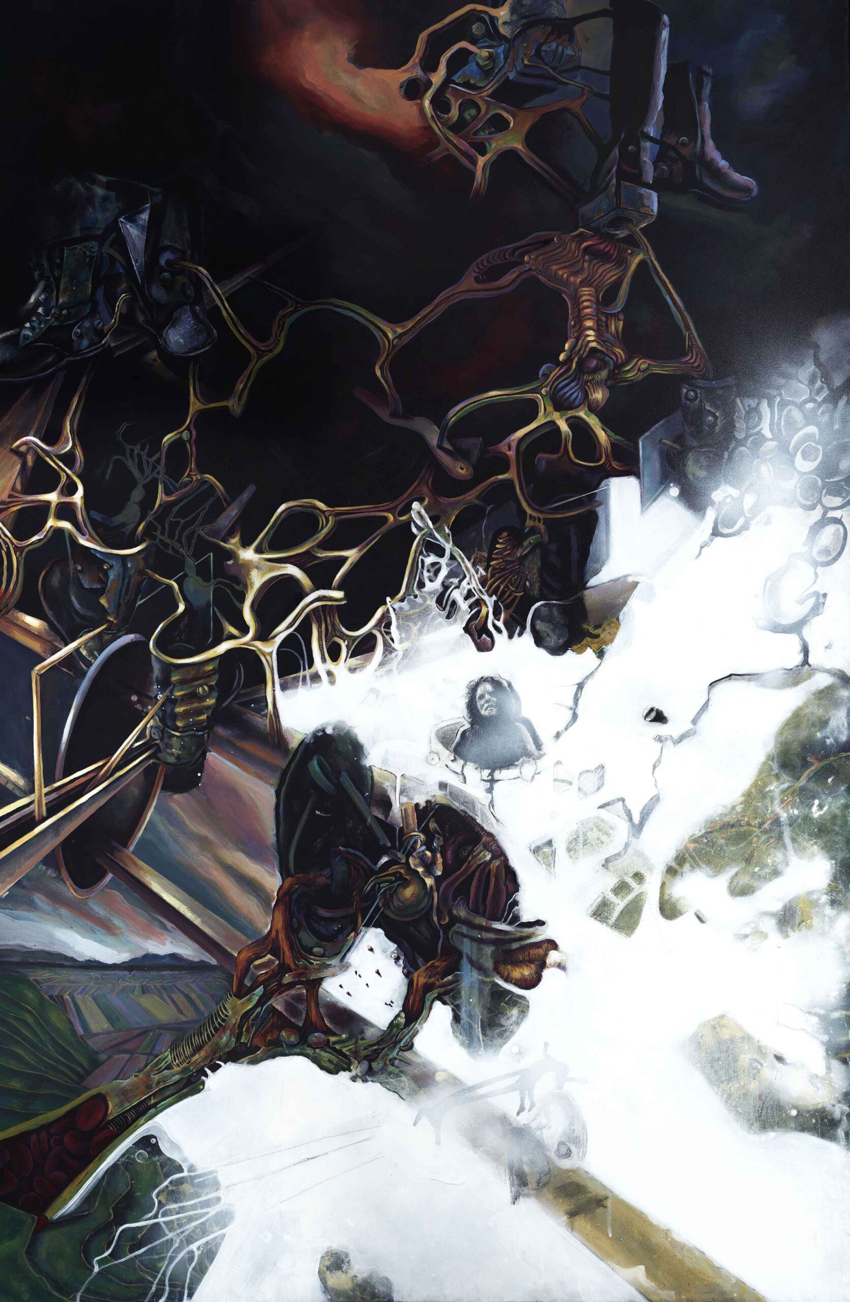 در این مجموعه با عنوان “در ابتدا کلمه بود” تلاش کردهام با استفاده از نقاشی به مثابهی وسیله و مجرا، عبور از تجربههای زیسته صرفا آسانتر کنم.