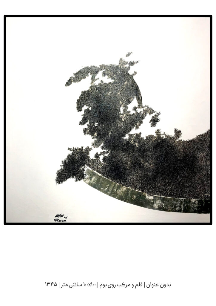 نقاشی حاضر اثری متفاوت از پیلارام است. نشانههای مطالعات پیلارام روی مهرها و خطوط ایرانی در این اثر به شکلی مدرن متبلور شده است. ترکیب بندی جسورانه و رنگهای سیاه و سفید، تصویری نئو مینمالیستی را به دست میدهد. از دور شبیه نقاشیهای هایکوست، آنی و معلق. شکلی منحنی و کـرجی مانند که انگـار طبیعتی بر آن سوار شده است. اما این طبیعت از خط نگارههایی شکل یافته، که به دقت و با صرف وقت کـنار هم چیده شده. وردی است بر کشتی نجات، غباری است معلق بر ماهی، سیاه. ظرفی است که از آن زیبایی سر ریز شده است.