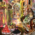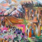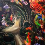گروتسک موجود در نقاشیها، مصنوعیت تزیین شده چشم اندازهای قاجار و دیگر عناصر تاریخ هنر را تشدید شده نمایش داده شده تا از خلالش به این نمایش رنگارنگ فکر کنیم.