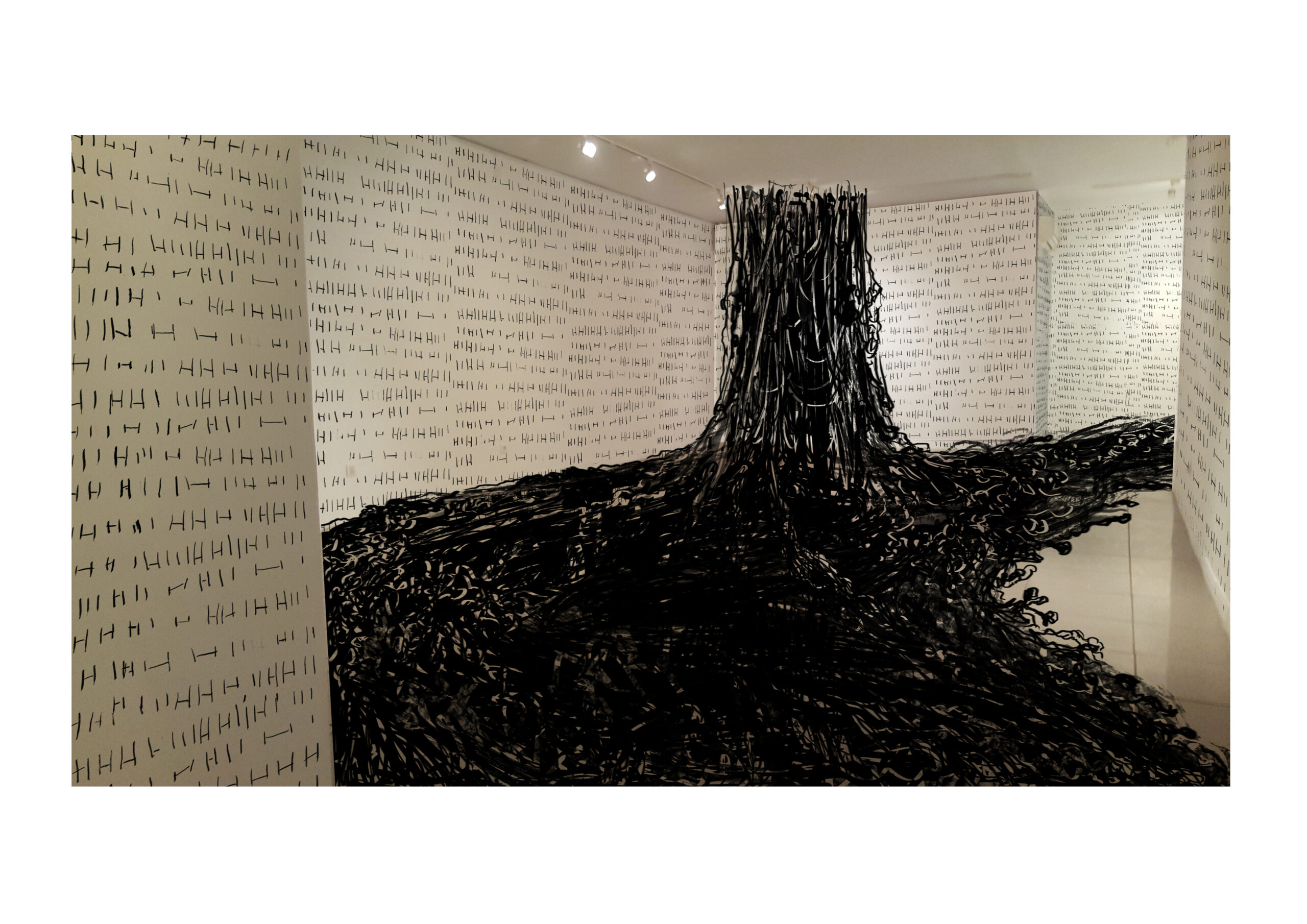 مکعب مربع های توخالی را درنظر بگیرید که در ابعاد یک کشوی بایگانی کوچک است و بر روی آنها پوستی از یک موجود زنده، دباغی شده و کشیده شده است. پوستی شفاف و ظریف که خالی بودن فضای داخل مکعب را نشان میدهد تکه های پوست به واسطه بخیه هایی نه چندان ظریف به یکدیگر متصل اند این بخیه ها به وسیله مو ایجاد شده اند، موهای خود سازنده آنها، که در طول اجرای کار، روزانه جمع آوری شده اند. فضای تهی درون مکعب ها به واسطه پوسته و شکل ظاهری آن معنا میابد، چیزی حس می شود که دیده نمی شود. در فیزیک کلاسیک فضای تهی عاری از ماده است اما بر اساس نظریه کوانتوم، فضای تهی مالا مال از ماده است.نوسان های خلاء کوانتومی. اصل عدم قطعیت هایزنبرگ بر این اساس است، خلاء محیطی پویاست که در آن تعداد کمی از ذرات به صورت تصادفی ناپدید و مجددا پدیدار می شوند و یک میدان متناوب انرژی ایجاد میکد. انسان در طول زدگی خود بارها درگیر احساسات می شود که گاهی بیشتر درد آور و سخت است. زخمی را در نظر بگیرید که حتی وجود ندارد چیزی برای مراقبت و مرهم گذاشتن نیست اما دردی است بی پایان که گاهی خارج از حد توان تحمل است، روانشناسان درد را اینگونه تعریف میکنند. درد حسی ناخوشایند و تجربه ای احساسی همراه با آسیب بافتنی از بدن یا قسمتی از عاطفه است! چیزهای زیادی در انسان یا هر موجود دیگری وجود دارد که دیده نمی شوند، لمس نمی شوند اما تاثیری عمیق دارند که غیر قابل تصور است. تعریف درستی نمی توان از آنها ارائه داد اما میتوان به خوبی آنها را حس کرد. درد یکی از آنهاست، دردی که بر روی روح و روان انسان تاثیر می گذارد. غم و اندوه و هرآنچه احساسی عمیق که در درون انسان ایجاد می شود چیزی جز فضای خالی نیست. در برابر مشکلات و مصیبت های بزرگ انسان علاقه دارد تا نشانه یا قسمتی از آنرا نزد خود نگاه دارد مثل اینکه شئی مقدس برای پرستیدن دارد که میتواند به آن رجوع کند، یکی از شیوه های روانشناسی برای حل کردن مسائل روحی مواجه شدن با مسئله است. احساسی که تمام روح انسان را آزرده و در موقع مواجه شدن با آن قدرتش را از دست می دهد و تاثیرگذاری آن کمتر شده. انسان بایگانی نهفته ای از این احساسات است که با مرور زمان دلیل آن به خوبی مشخص نمی شود اما قدرت و تاثیرگذاری چیزی که در بایگانی پنهانی ذهن و احساس قرار دارد همچنان پا برجاست. تصور کنید صد عدد از این حجم ها مانند یک هرم توخالی در قائده ای مثلثی بر روی هم چیده شده اند، هرم در آیین ها و ادیان و فرهنگ های مختلف معانی متفاوتی دارد، کلمه هرم از واژه یونانی به معنی آتش و مرکز گرفته شده است. این کلمه به معنی نوعی انرژی است که از مرکز هرم آزاد می شود. این شکل کمک میکند تا انرژی زمین به آسمانها متصل شود قائده سطح زیرین هرم نشان دهنده شالوده ای جامد و زمینی است که در مقطع بزرگ به زمین متصل می شود و بار انرژی های اضافی را به زمین ارسال می کند در حالی که نوک هرم قادر است انرژی را از زمین به بالا هدایت کند. سنگهای هرمی یا مثلثی اشاره به قبر یا مقبره ای بلند مرتبه دارند. در رون هر انسان یک بهشت و جهنم، یک گورستان و یک محل تولد وجود دارد که اهمیت آن را فقط شخص درک میکند. هرکدام از این خشت ها ویژگی و شخصیت منحصر به فرد خویش را دارند. به طور مثال در بعضی از این مکعب ها استوانه ای وجود دارد که با مو پوشیده شده است و به واسطه پوست فقط حاله ای از آن دیده می شود. برای ساخت این مکعب ها نیاز به آرماتوری فلزی است که زاویه ها و ستونهایی را بسازد، سپس بر روی آن با ملات ترکیب گچ و سیمان و آهک قالب گرفته می شود مکعبی که به دست می آید شش وجه آن خالی است. تعداد این مکعب ها میتواند میتواند بسیار بیشتر ازصد عدد باشد، این عدد به صورت تخمینی بیان شده، ارتفاع تقریبا در نظر گرفته شده ۲ متر می باشد در قائده ۲ متری. نور پردازی در این کار اهمیت بسیار بالایی دارد تا هم شفافیت و تهی بودن خشت ها را نمایش دهد و هم به سنگینی فضا بی افزاید. ساختن فضا و اتمسفر اهمیت بسیار زیادی دارد، نیاز به فضایی سنگین و با